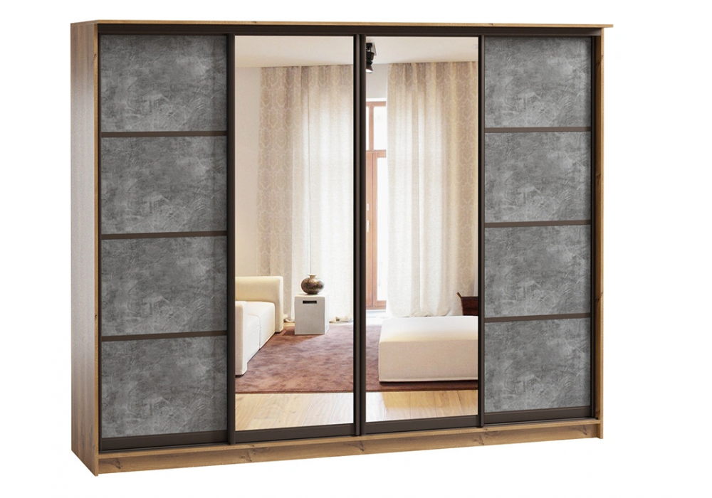 Шкаф купе 4 двери (дуб вотан, цемент светлый, профиль коньяк)